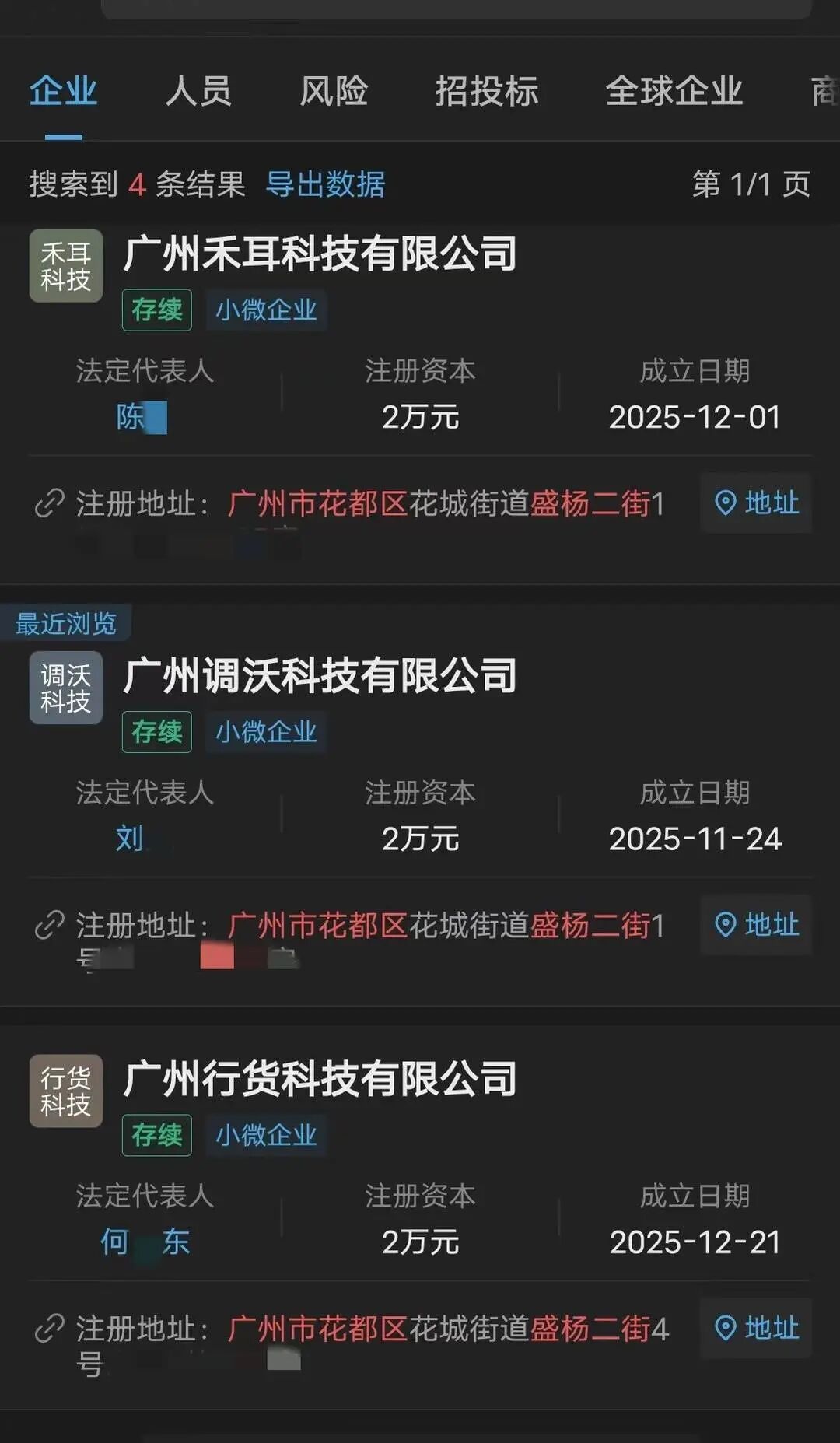 公司均为新注册,但无任何实质经营信息